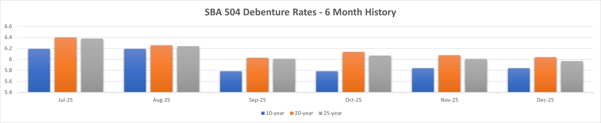 The chart below represents the approximate effective interest rate of the SBA portion of a loan by averaging the note rate plus all servicing fees, amortized over the life of the loan. NOTE: 10-year debenture sales take place every other month, thus 10-year rates are also published every other month.