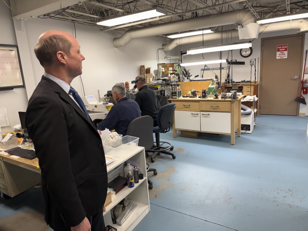 As part of Minnesota’s Shop Local initiative, Amplio’s CEO, Brian McDonald, and SVP/Senior Loan Officer, Andy Clausen, recently joined lending partners Kim Storey and Angie Trocke from Highland Bank on a visit to R.F. Moeller Jeweler in Saint Paul, MN. The group visited the jeweler’s main headquarters in St Paul’s Highland Park neighborhood, but they also have showrooms at 50th and France in Edina.